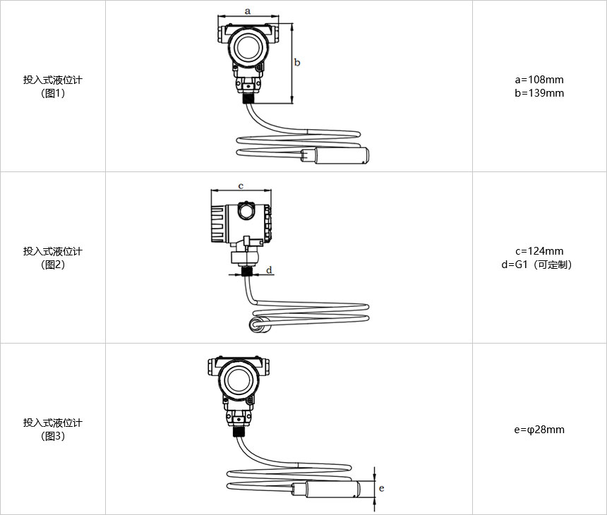 GKYWG-63投入式液位計是河北光科測控設(shè)備有限公司采用擴散硅壓阻式壓力傳感器作為測量元件,經(jīng)過數(shù)字放大處理電路及溫度補償,利用壓阻式原理,將被測介質(zhì)的表壓轉(zhuǎn)化為標(biāo)準(zhǔn)的電流信號,是一種可測量液位的壓力傳感器。又稱“靜壓液位計、液位變送器、液位傳感器、水位傳感器”等。