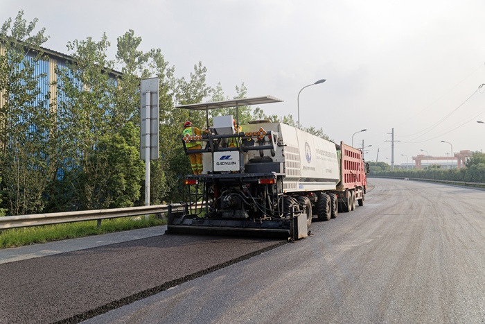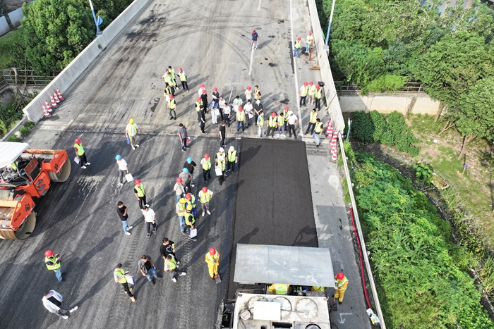 作為本次活動的核心環(huán)節(jié),全體人員實地觀摩了由高遠路業(yè)進行施工的預(yù)防性養(yǎng)護技術(shù)現(xiàn)場,直觀了解實際應(yīng)用效果。在長纖維功能化復(fù)合封層技術(shù)區(qū)域,技術(shù)人員講解了該技術(shù)如何通過一層找平,兩層抗裂,三層防水為道路建立完善的表面功能。在MOH抗滑超薄磨耗層技術(shù)現(xiàn)場,參觀人員對其抗水損、耐磨耗和抗滑性能進行詳細了解。針對車轍、沉陷、龜裂等病害,改性鋪裝技術(shù)展示了如何將瀝青混凝土舊路面在常溫條件下改性成復(fù)合有機水硬性材料路面。以材料關(guān)鍵技術(shù)為根本,以成套專用裝備為依托,以當(dāng)代工程技術(shù)為手段,該工藝具有抗變形、防水損、耐老化、長壽命等多重技術(shù)優(yōu)勢。